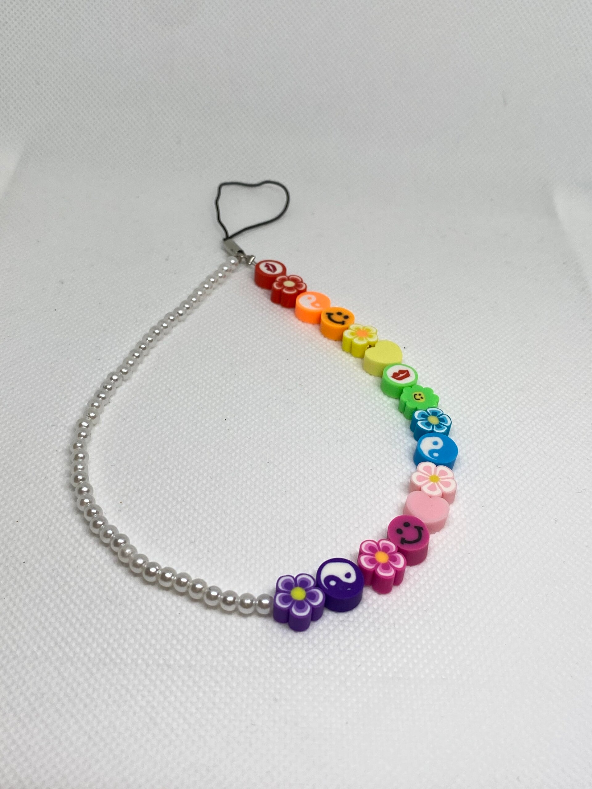 Telefoonkoord - veelkleurig & parels