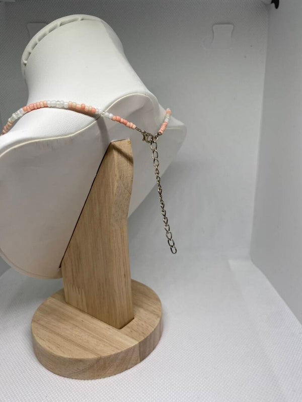 Ketting zilver sluitinkje - roze & wit