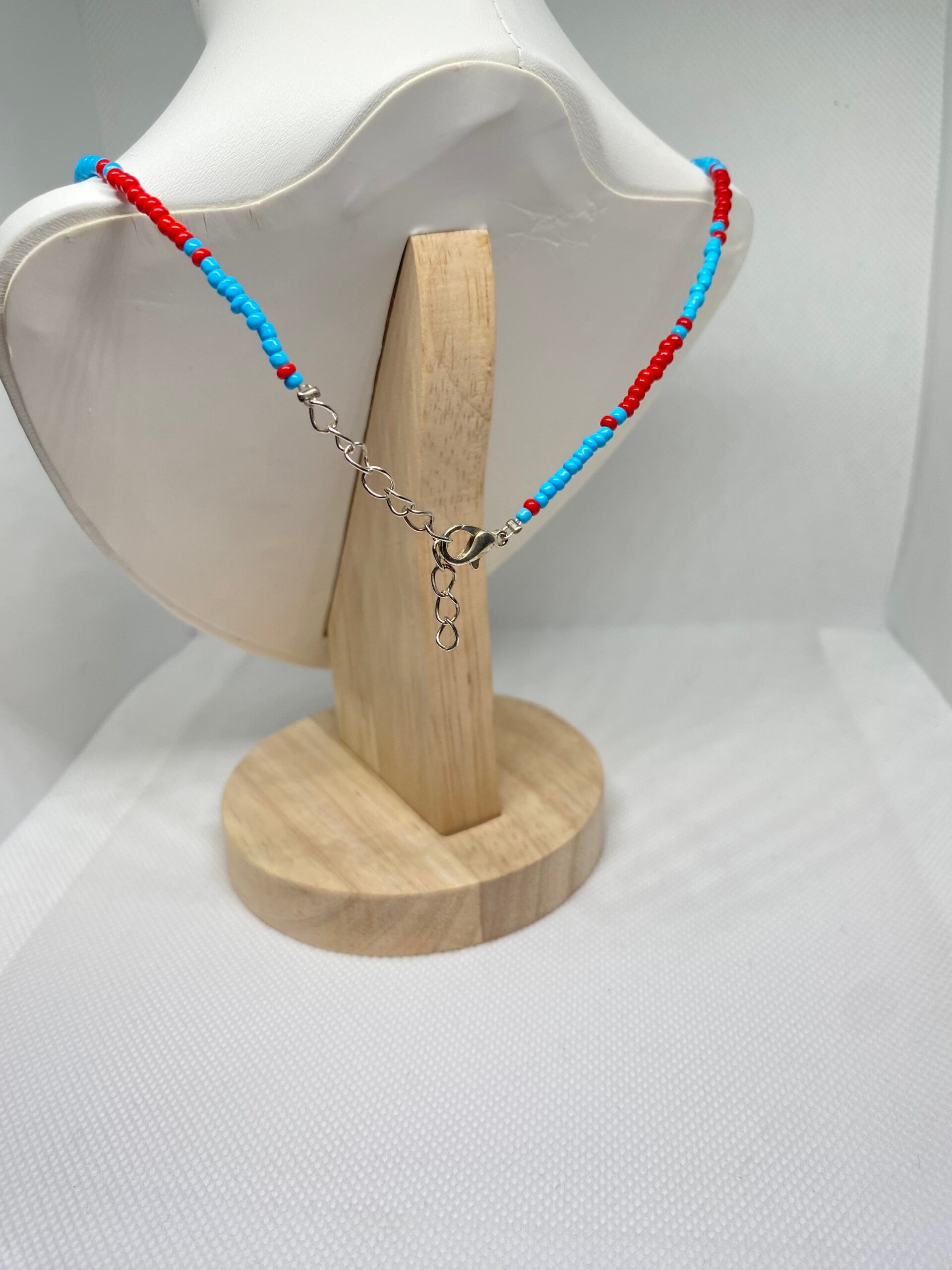 Ketting zilver sluitinkje - blauw met rood