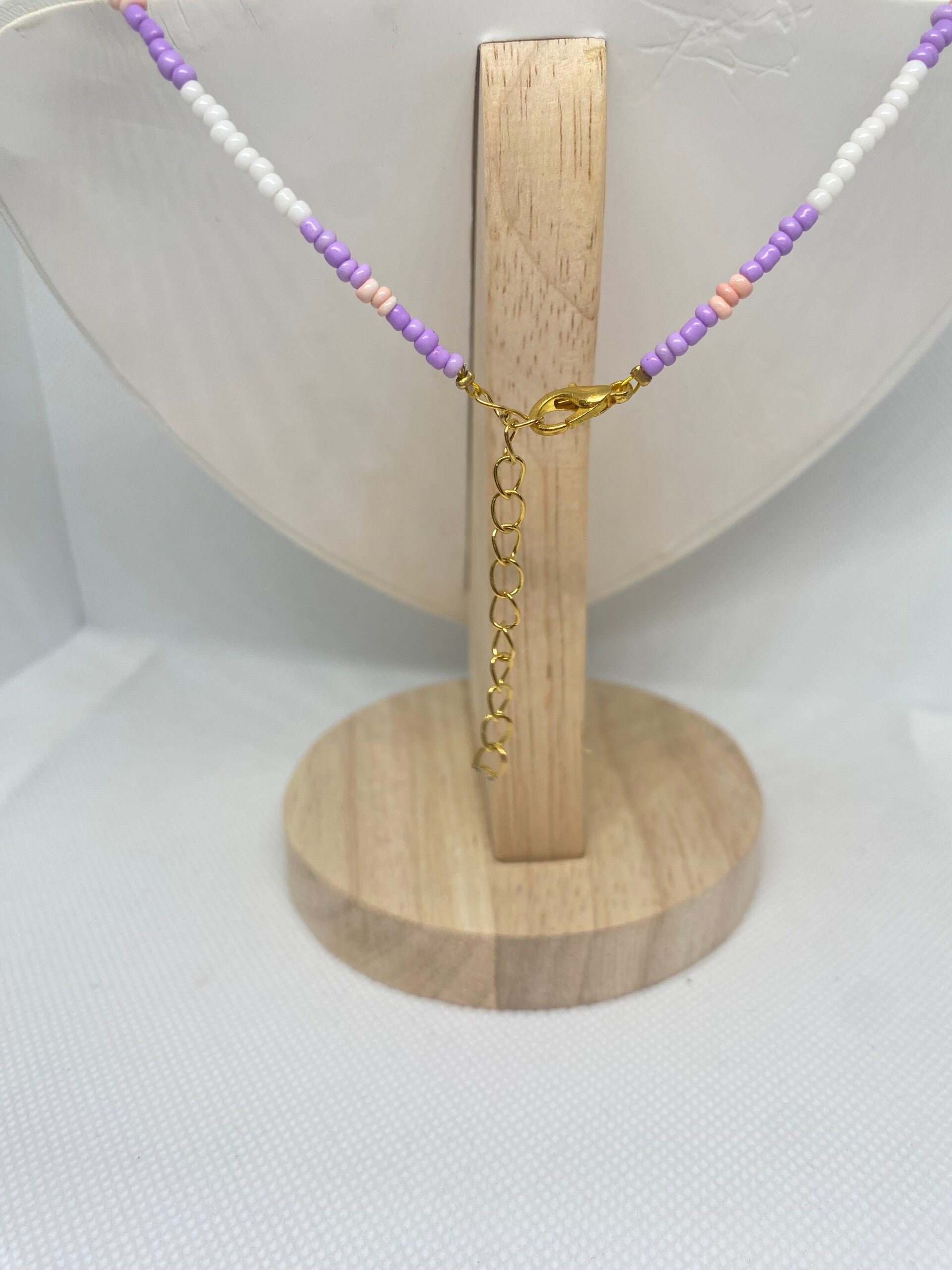 Ketting goud sluitinkje - paars met wit